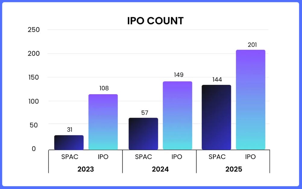 Crypto-linked SPACs: Have revived, with over $10 billion raised in 2025 alone, particularly those targeting digital asset treasury strategies.