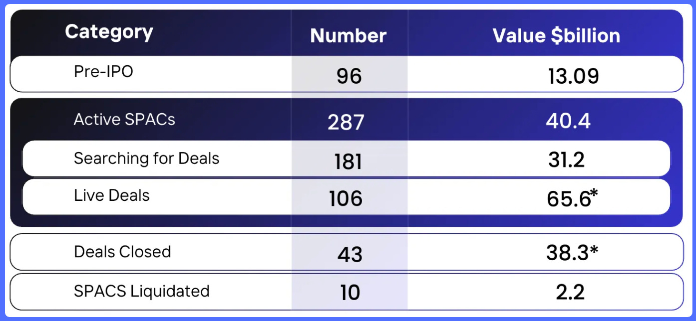 Dry Powder: 287 active SPACs hold $40.4bn.