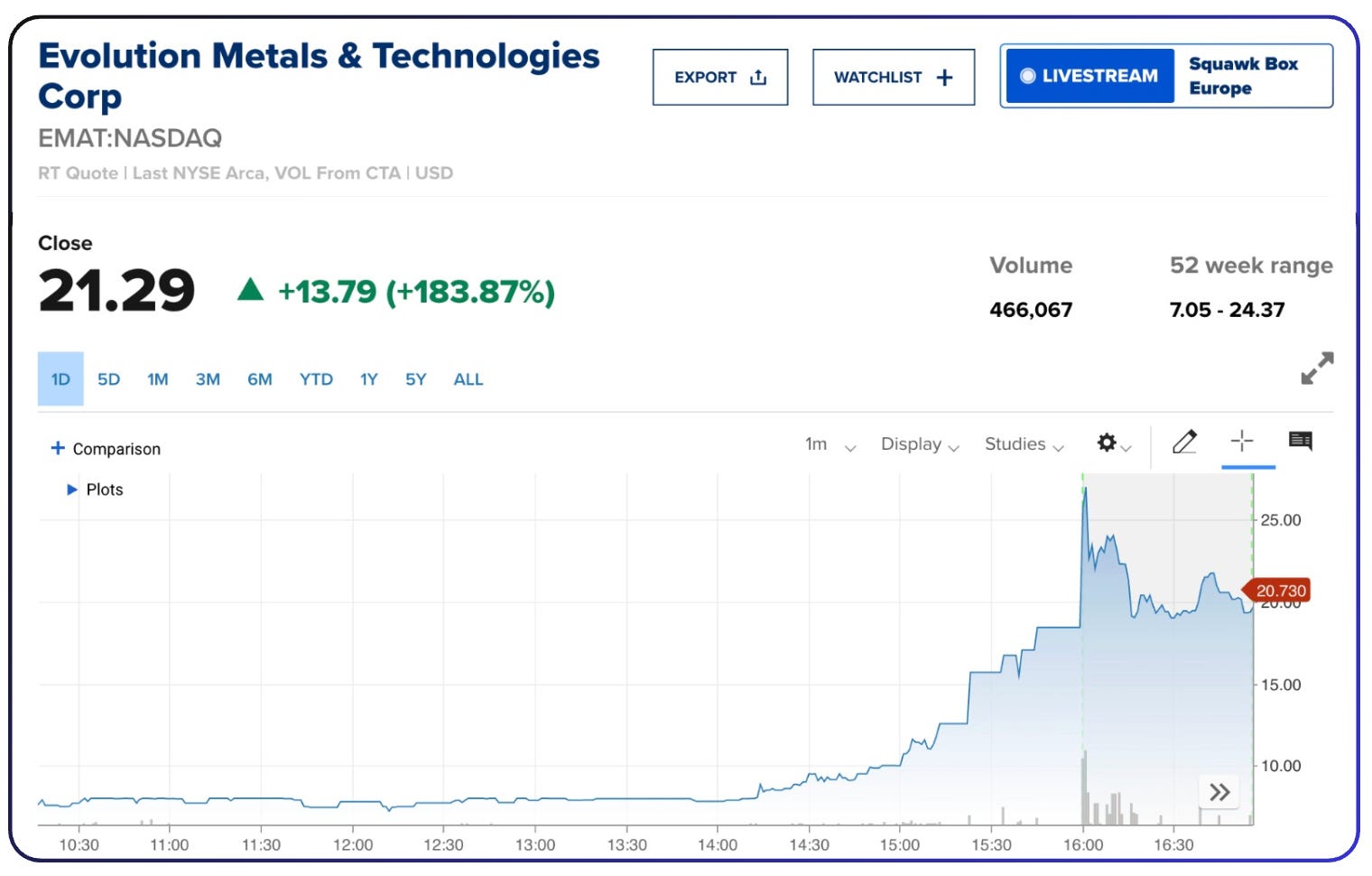 On the debut day EMAT surged to 21.29 USD, closing up 183.87% with a sharp intraday spike before stabilizing at elevated levels, highlighting an exceptional single-session move.